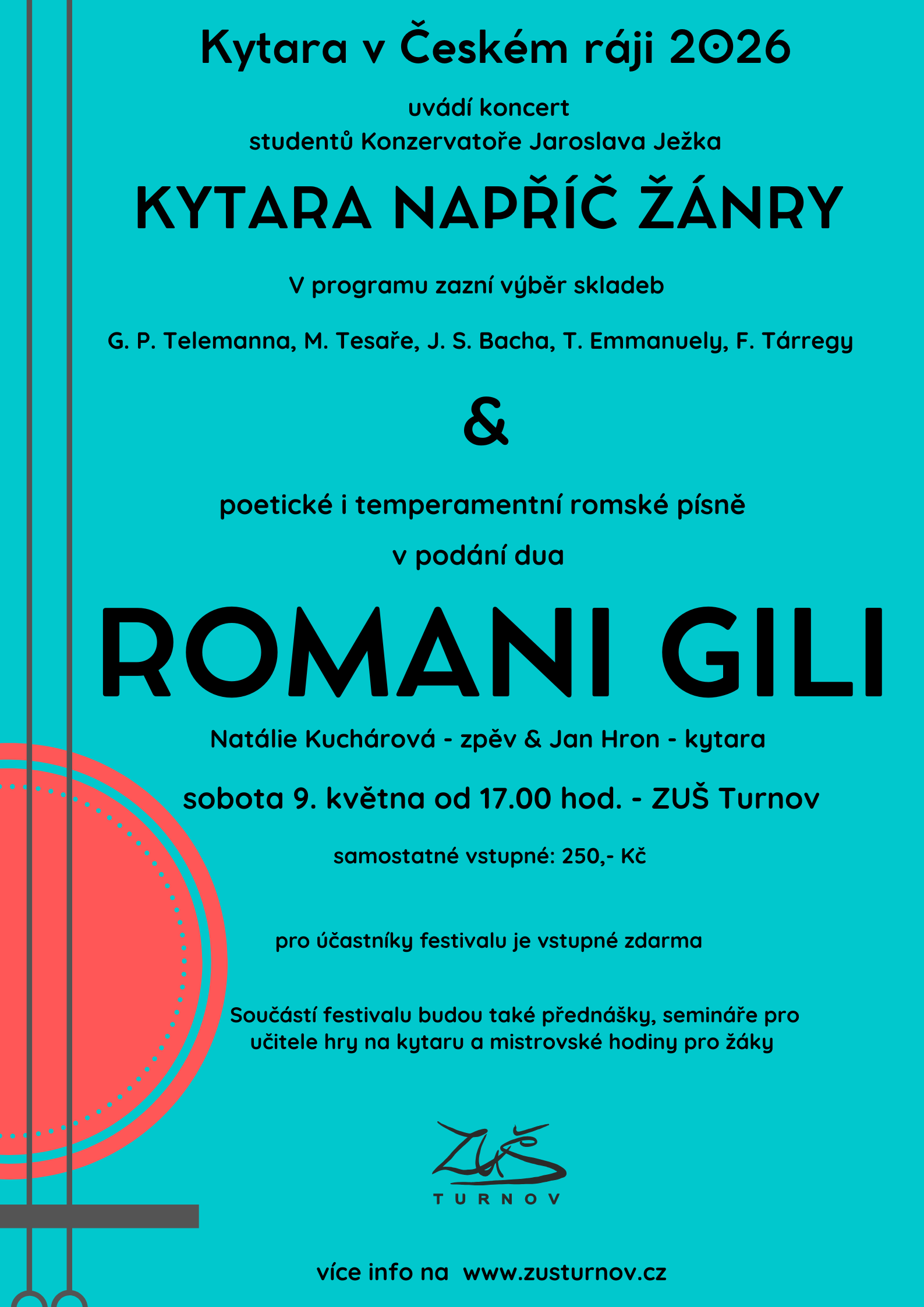 V sobotu 9. května 2026 se v prostorách ZUŠ Turnov uskuteční XIX. ročník kytarového festivalu Kytara v Českém ráji.