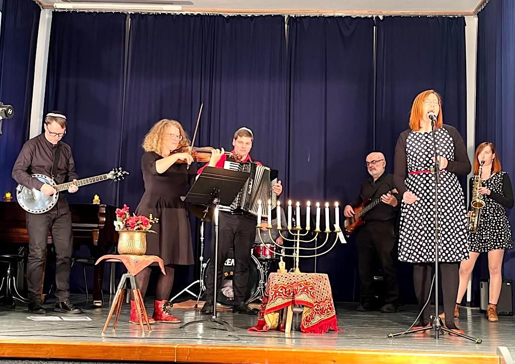 DOKUMENT O ŽIDOVSKÉM SVÁTKU CHANUKA DOPROVÁZELA TURNOVSKÁ KAPELA. Komponovaný pořad pro pražskou Židovskou obec byl v závěru listopadu natáčen ve zdejší synagoze a umělecké škole. Hlavními účinkujícími jsou Vida Neuwirthová s Divadlem Feigele a dalšími interprety, ke spolupráci byla přizvána také turnovská kapela Mackie Messer Klezmer Band, hrající převážně židovskou muziku. Ta v podání muzikantů z Turnova zazní také zítra od 16 hodin v pražské Jeruzalémské synagoze při Svátcích Světel.