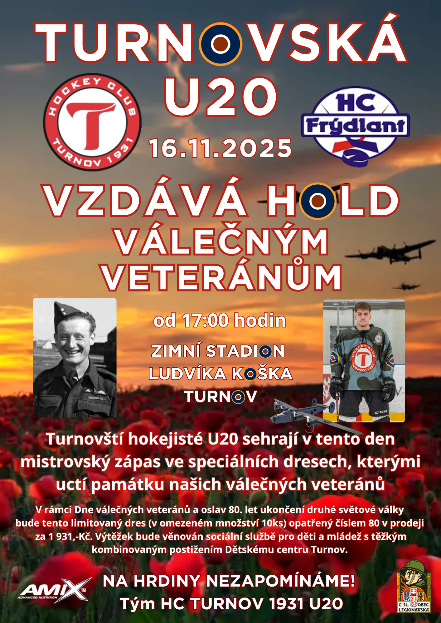 Podvečer 16. listopadu je v turnovském Zimním stadiou Ludvíka Koška vyhrazen mimořádnému utkání juniorů, věnovanému připomenutí válečných veteránů.